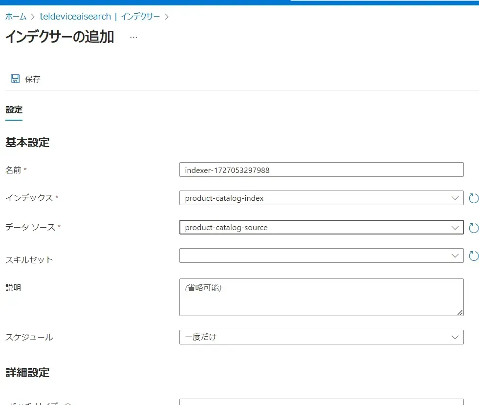 ここではインデクサーを設定する際に、インデックスにデータを取り込むタイミングや頻度(リアルタイム、スケジュール更新など)を指定することができます。
