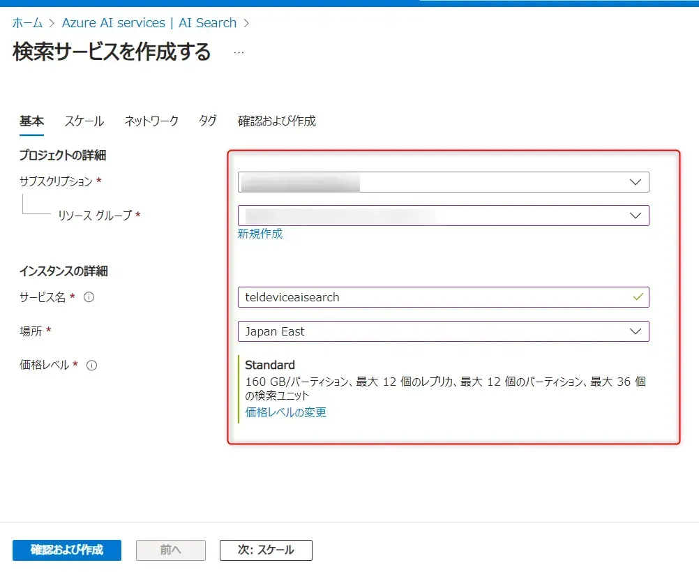 選択するプランによって、提供されるストレージ容量(Azure AI Search が保存できるデータの量)や機能が異なります。
