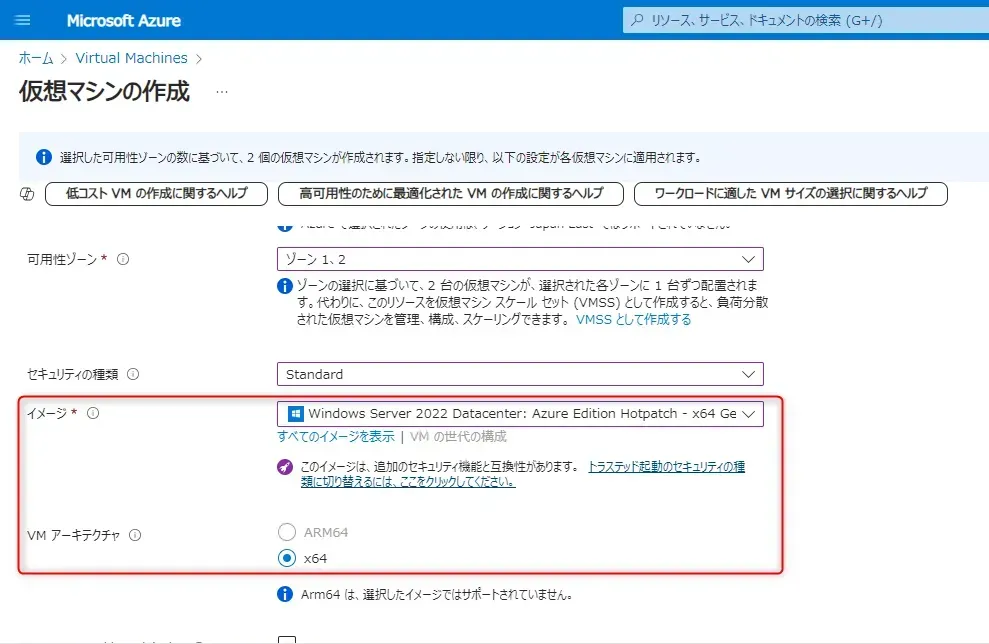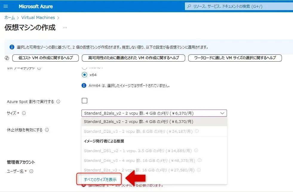 まず、どのシリーズの VM を選ぶか決定します。シリーズごとに、CPU(vCPU)、メモリ(RAM)、ストレージの構成が異なり、それに基づいて料金が変わります。