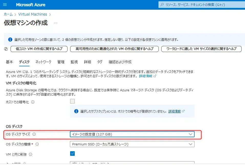 - OS ディスク:VM を起動するためのオペレーティングシステムが保存された主要ディスクです。