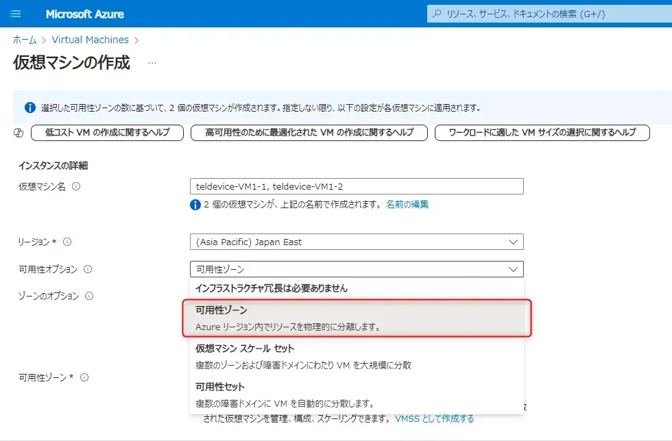 Azure VM の可用性と冗長性