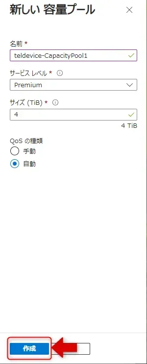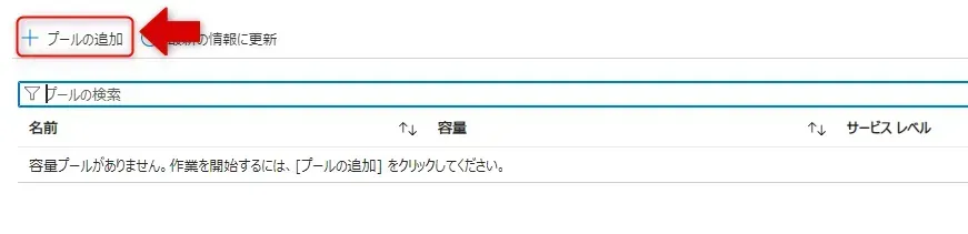 次に、容量プールとボリュームを作成します。ここでいう容量プールは Azure NetApp Files 内でストレージリソースをまとめて管理するためのグループであり、その中に存在するボリュームが実際にデータを保存する領域となります。