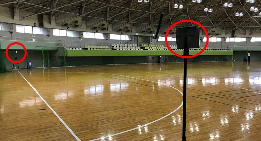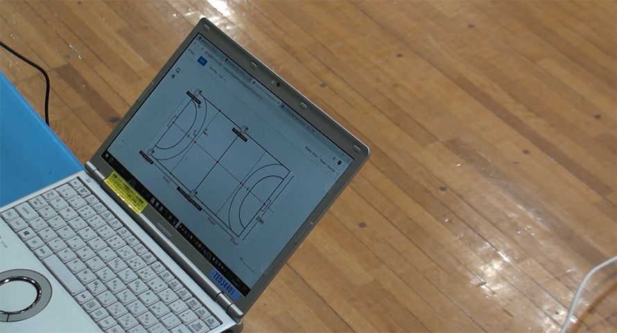 かくして当日を迎え、実証実験を率いるK氏と共に少し早めに会場に到着。前の利用枠でハンドボールの部活をする高校生を遠目に見ながら我々の時間を待ちます。