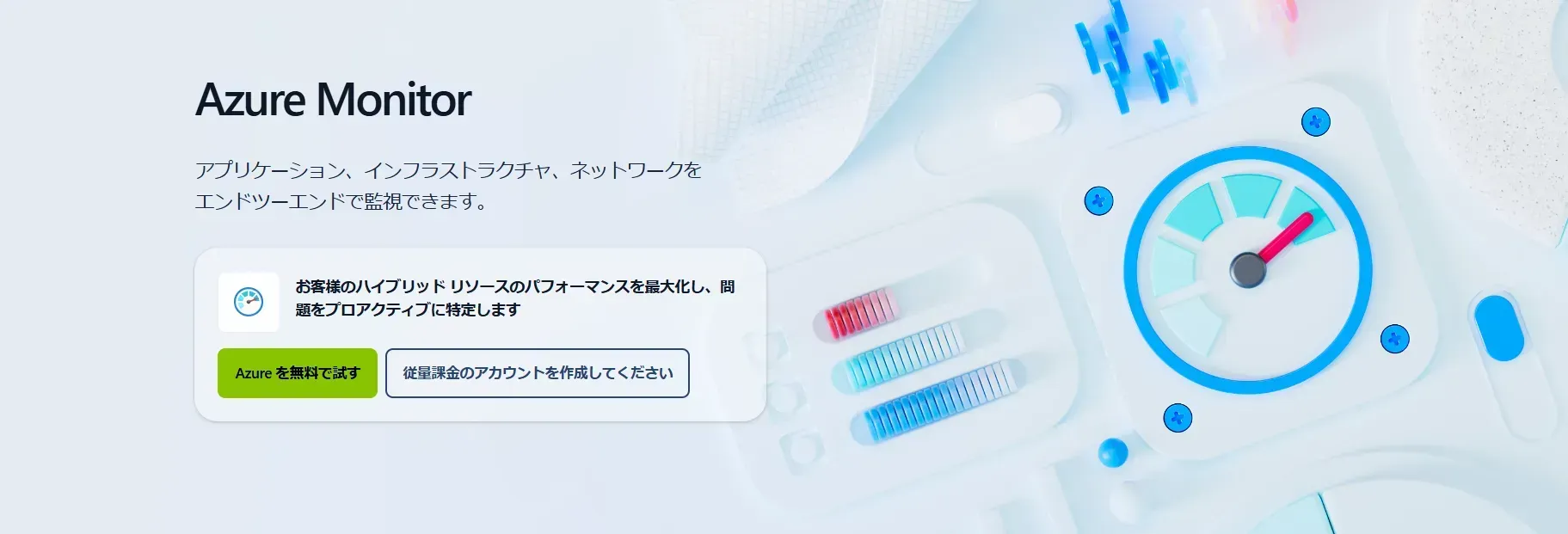 - 効率的な監視: Azure Monitor で、クラウドとオンプレミスの両方を監視し、異常時にアラートを設定することも可能です。