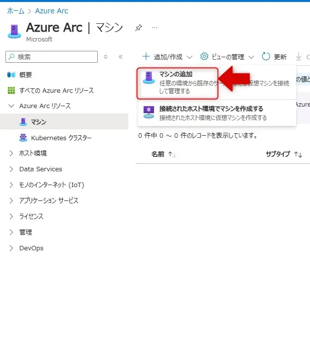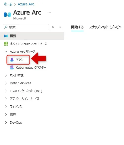 - 「Azure Arc」画面で、「マシン」をクリックします。