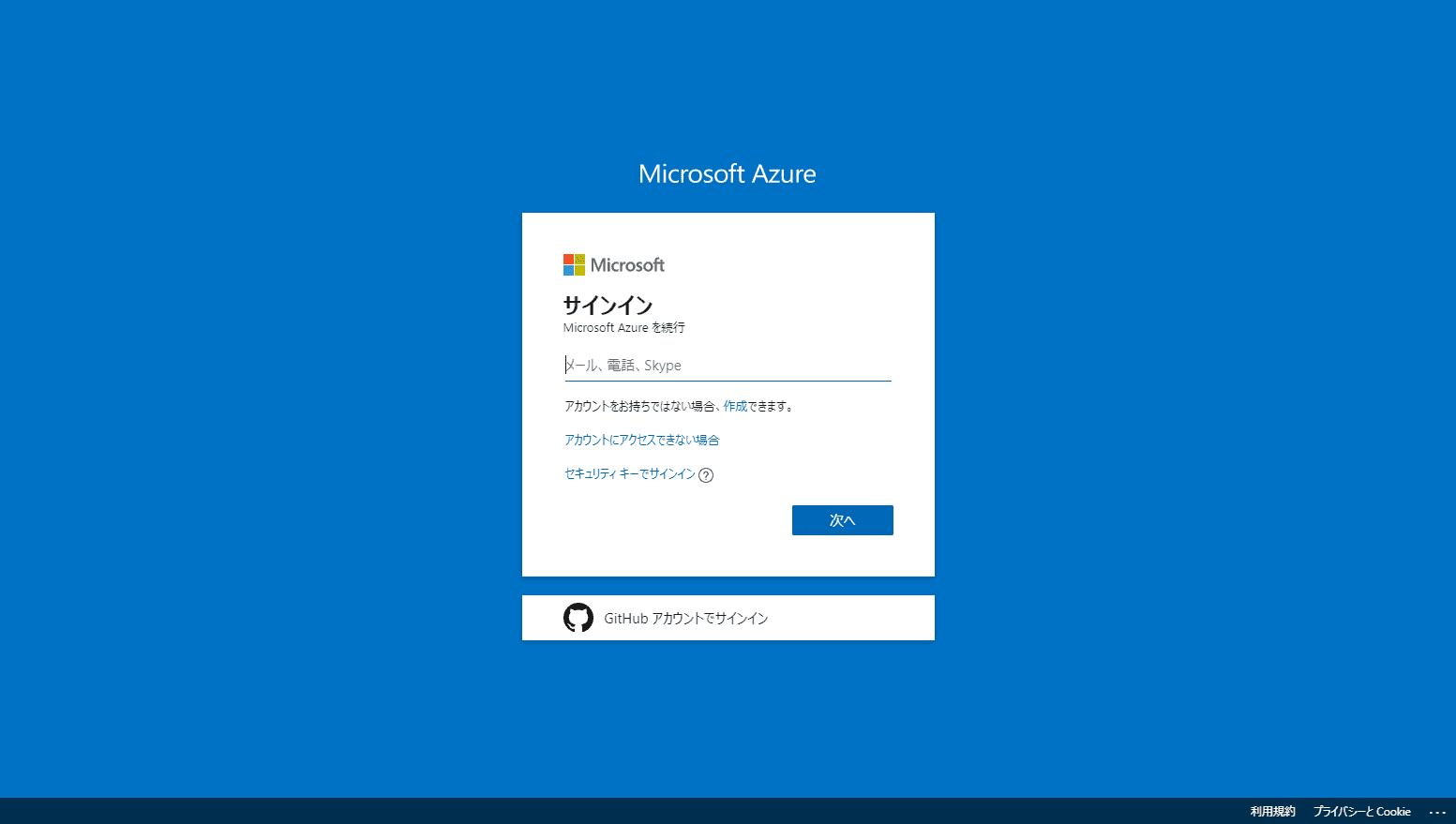 ログインするとAzure Portalのログイン画面が表示されます。