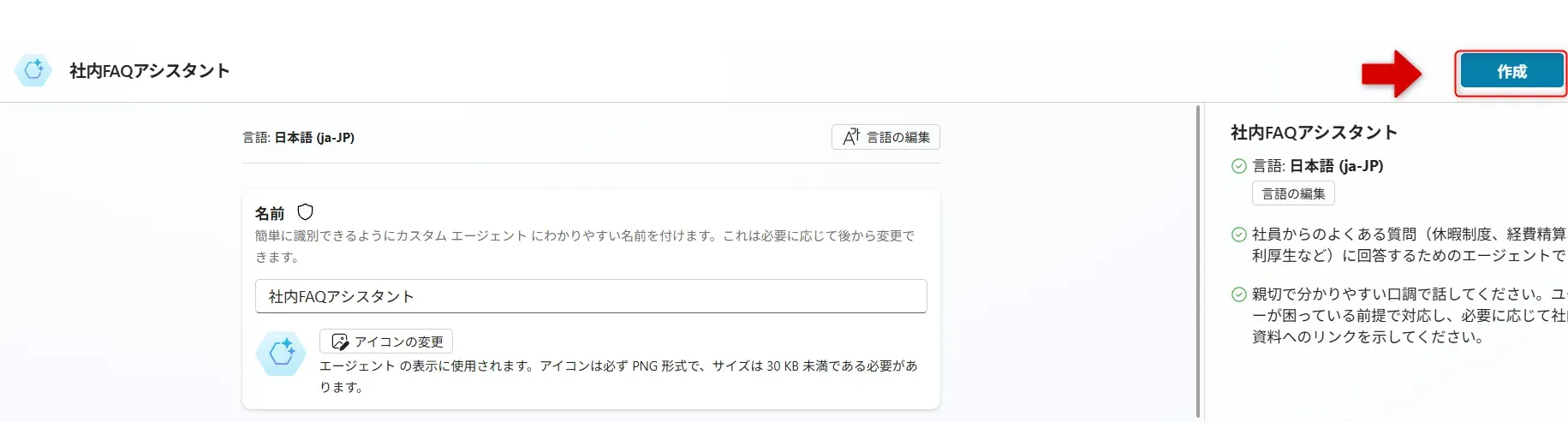 - 名前(例:社内FAQアシスタント)