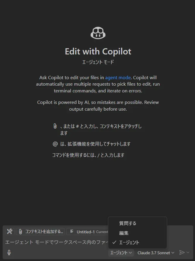これで、エージェントモードを利用する準備が整います。