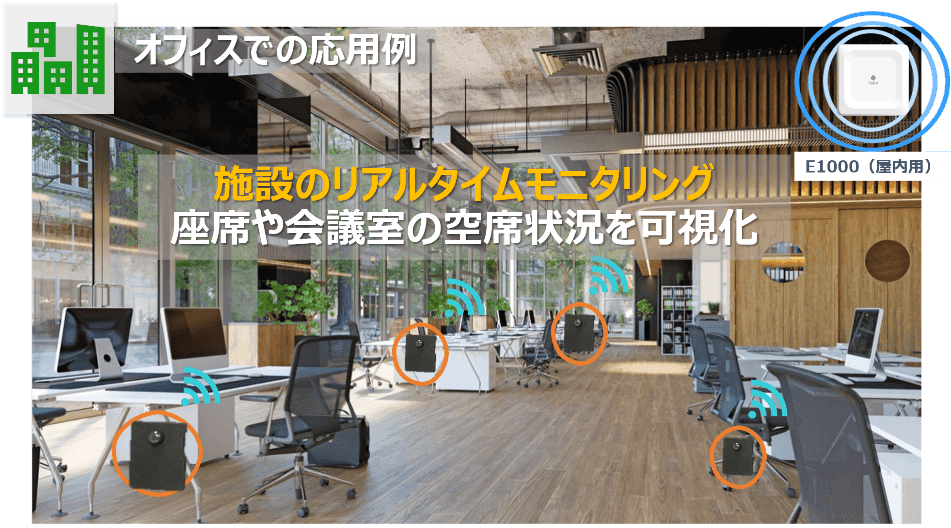 BLE人感センサーと屋内用BLEルーターの組み合わせで、施設のリアルタイムモニタリングを実現。オフィスの座席や会議室など空席状況を遠隔から確認し、効率よく利用することができます