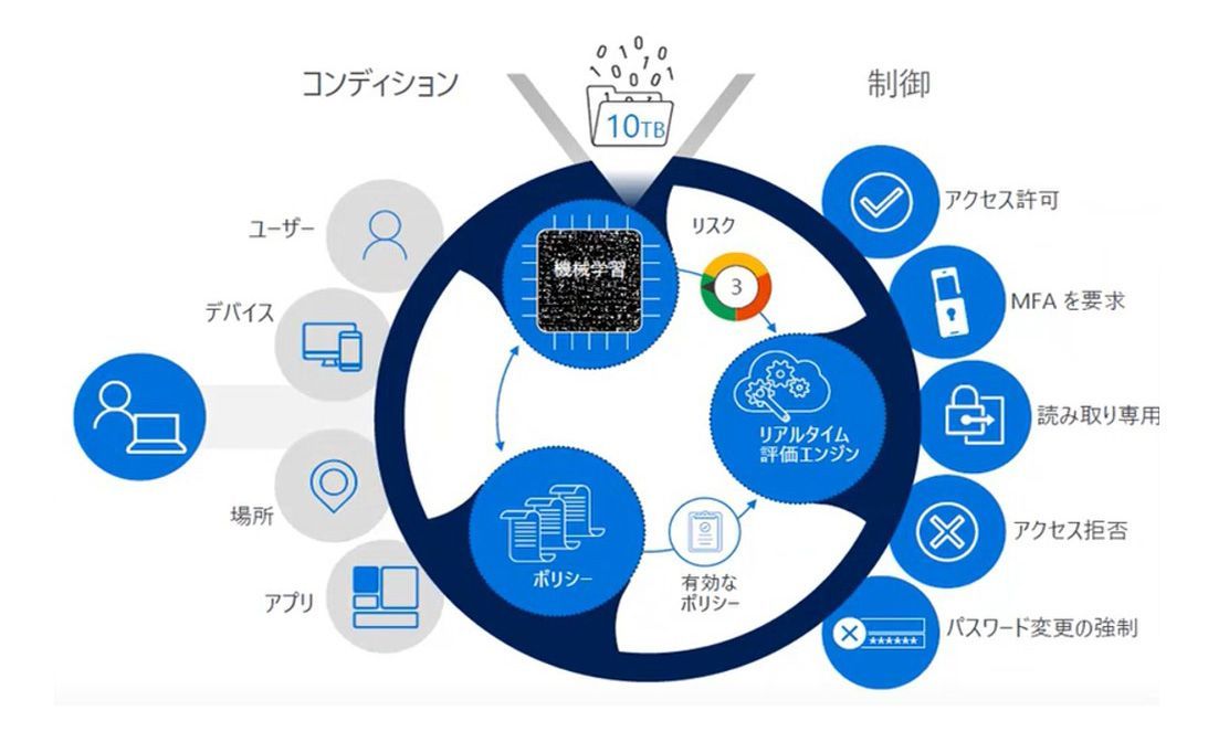 Azure ADで実現できる機能について、例えば「条件付きアクセス」のユースケースを見ていきましょう。