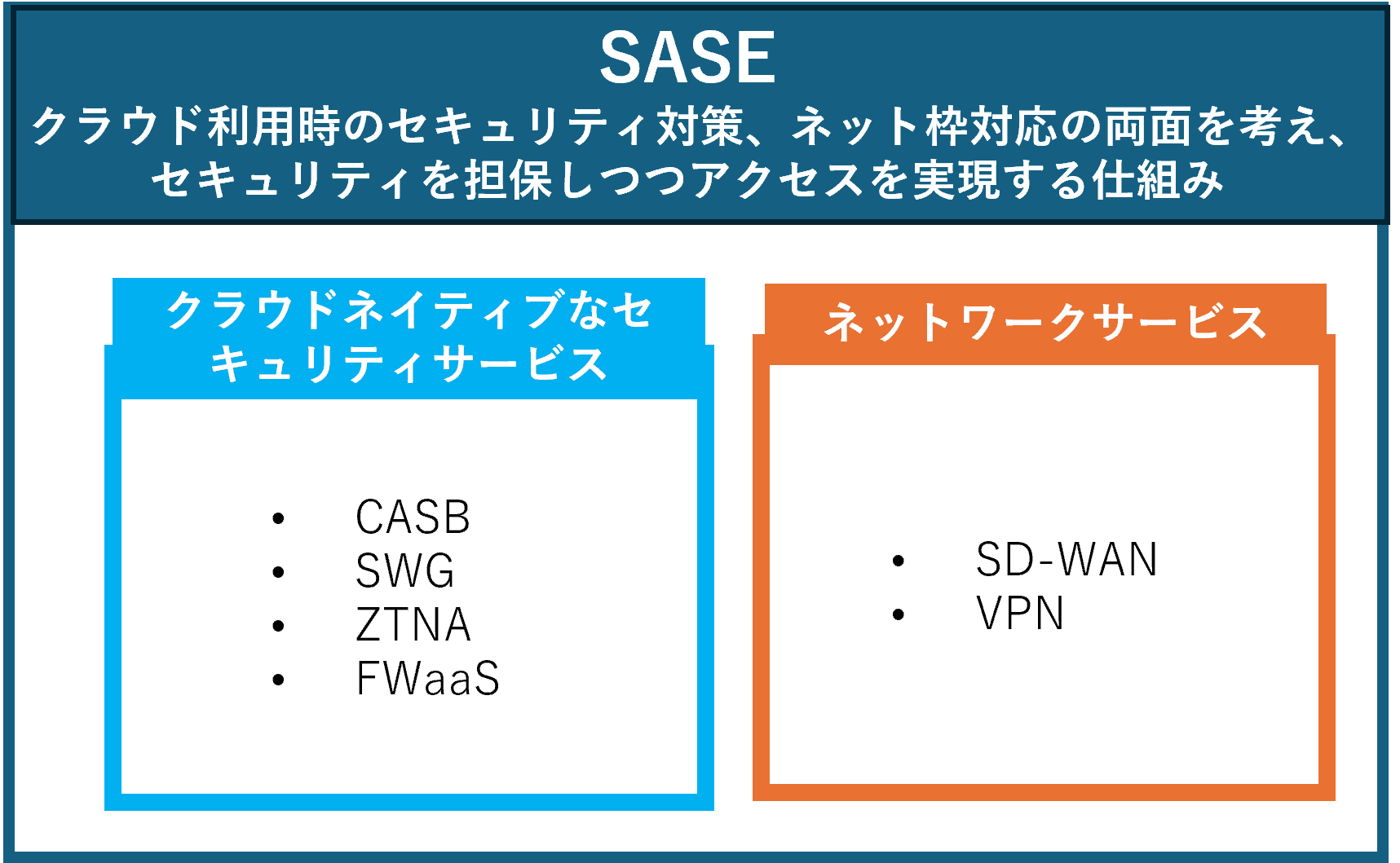 SASEを定義するならば、従来のネットワークサービスとセキュリティサービスを融合させた、新たなネットワークセキュリティモデルだといえます。
