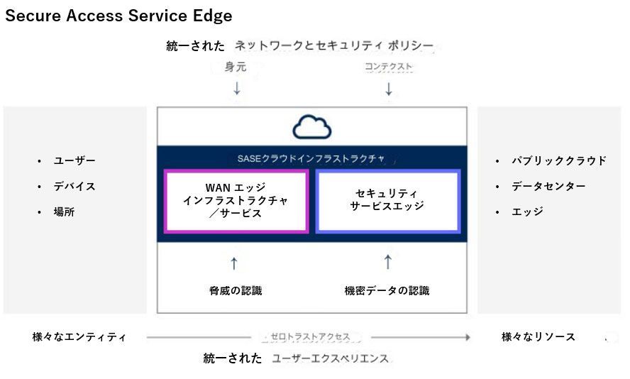 SASEは、安全なネットワークアーキテクチャと、セキュリティアーキテクチャで構成されます。