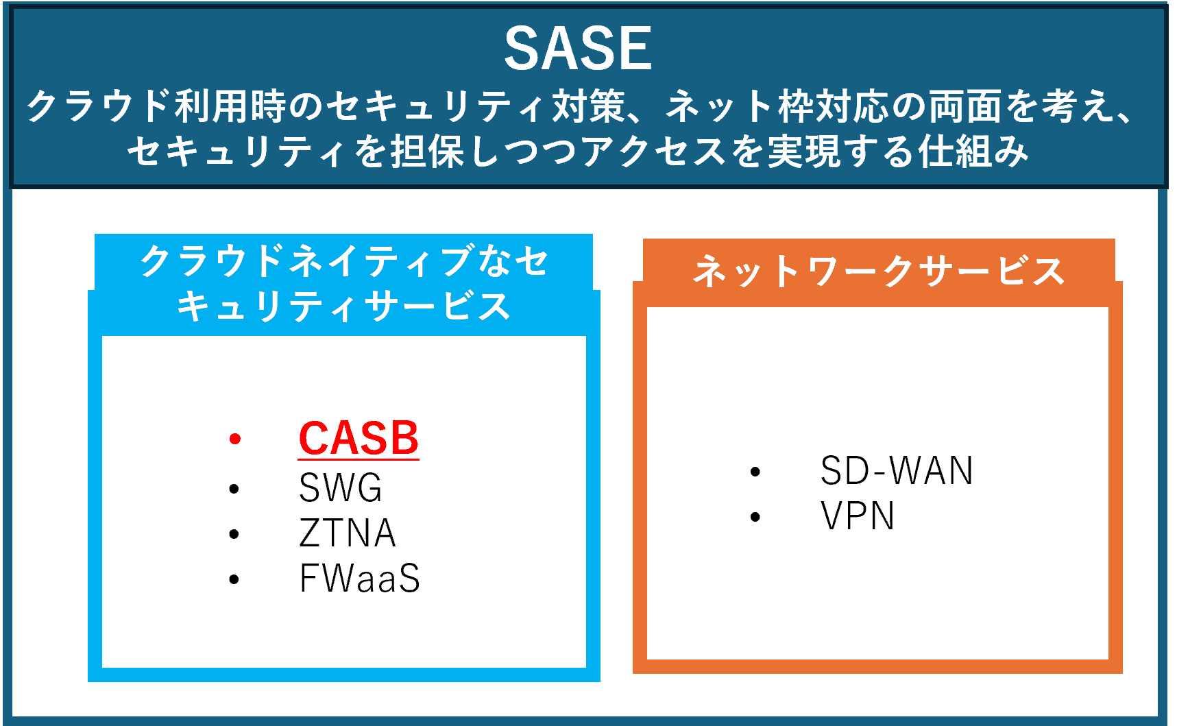 CASB | クラウドサービスを安全に使うためのセキュリティ対策で、SASEにも含まれる |