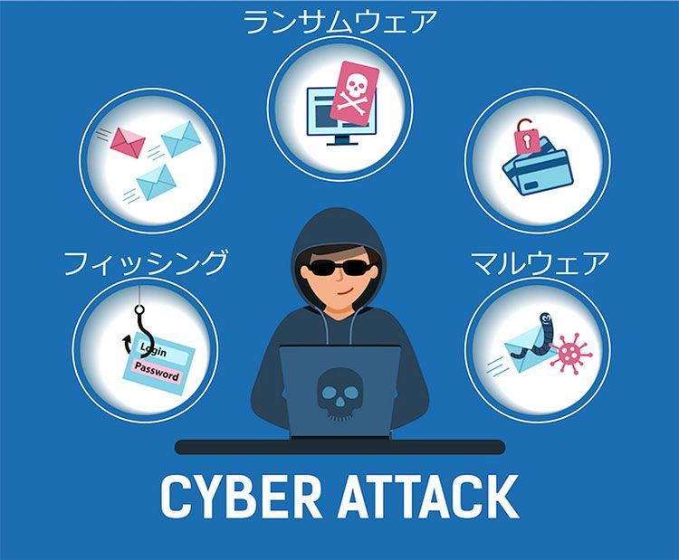 サイバー攻撃には、マルウェア、フィッシング、ランサムウェアなど様々な手法があります。