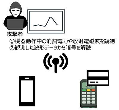 サイドチャネル攻撃は、電力消費や電磁波などの「サイドチャネル」を読み取ることで暗号化鍵やデータを盗もうとする手口です。
